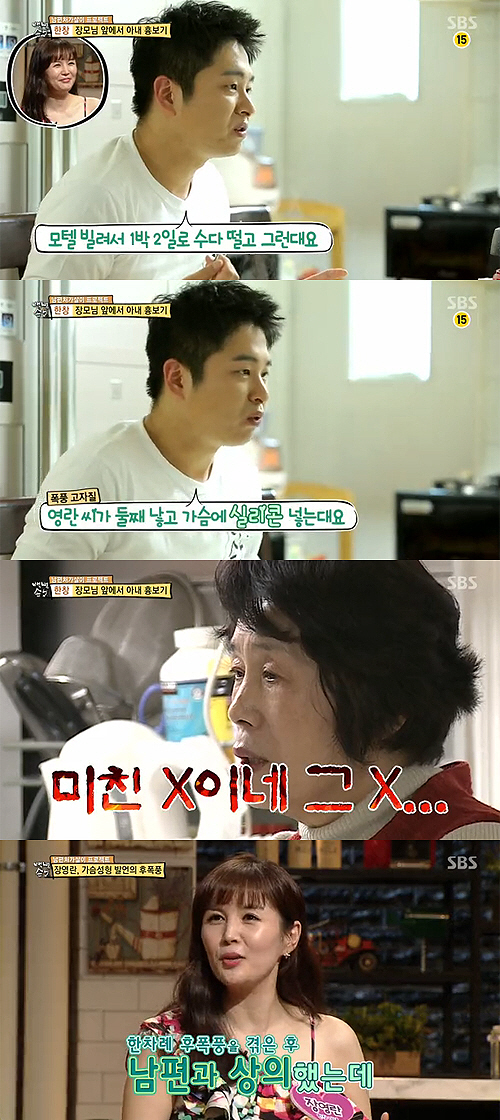 이날 장영란의 어머니는 사위를 위해 따뜻한 밥상을 준비하며 "속상한 일 있으면 나한테 다 얘기해라. 영란이랑 싸우지 말고 내가 다 해주겠다"고 말했다.