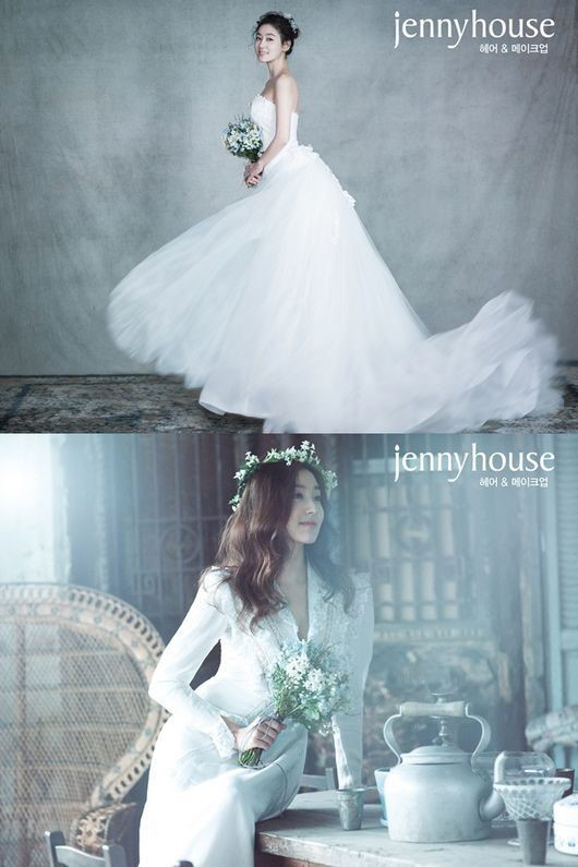화보에서 다양한 디자인의 드레스와 소담한 부케를 들고 청순미를 뽐낸 박진희는 이명순 웨딩드레스를 입고 다양한 콘셉트를 소화하며 아름다운 신부로 변신했다.