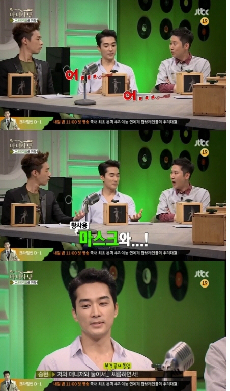 이날 송승헌은 "'이걸 어떻게 하냐'고 했더니 분장팀에서 마스크와 테이핑 할 수 있는 걸 줬다. 매니저와 둘이 씨름하면서 했다"고 설명했다.