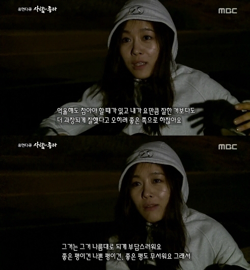 10일 방송된 MBC '휴먼다큐 사람이 좋다'에서 자신의 의도와 다른 인터뷰를 보고 한강으로 나갔다. 그는 "내가 할 수 있는 건 없다. 악플은 보지 않을 거다. 내 상처를 내가 후벼팔 이유는 없다"고 밝혔다. 이어 "라디오를 하면서 악플을 실시간으로 봤을 때 울다가 마음 추스르고 진행한 적도 있었다. 좋은 평도 마찬가지다. 조금 잘해도 과장되게 잘했다는 반응이 돌아와서 이젠 좋은 평도 무섭다"고 전했다.
