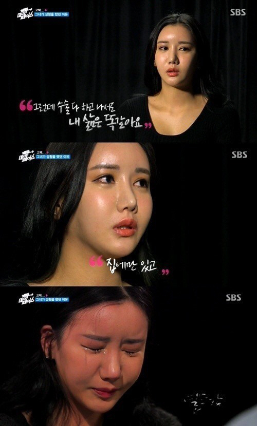이어 "예뻐지고 싶어서가 아니라 바꿔야겠다 싶었다. 전부 다"라며 "그렇게 하면 바뀔 거라고 생각했는데 수술 다 하고 나서도 내 삶은 똑같다"라고 고백하며 눈물을 흘렸다.
