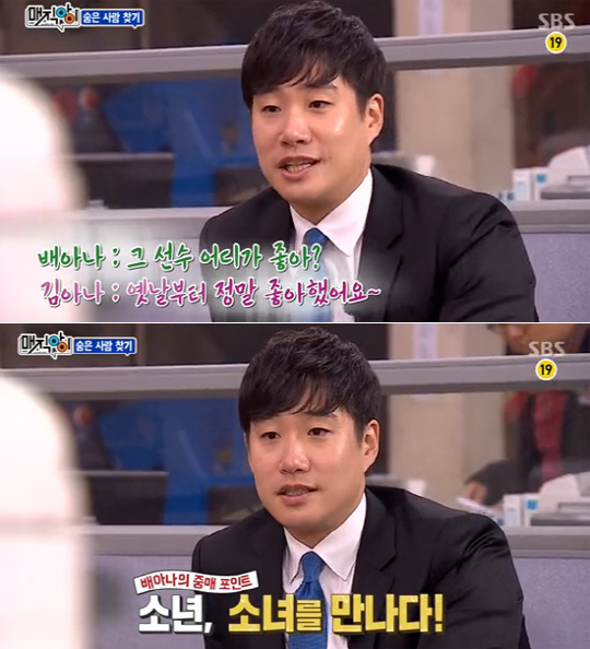 13일 첫 방송된 SBS '매직아이-숨은 사람 찾기'에서 배성재 아나운서는 "박지성이 오랫동안 혼자 지내서 헛소문이 돌았을 때 박지성 아버지의 마음이 좋지 못한 것 같았다. 그래서 괜찮은 친구가 있다면서 김민지 아나운서를 소개했다"고 말했다.