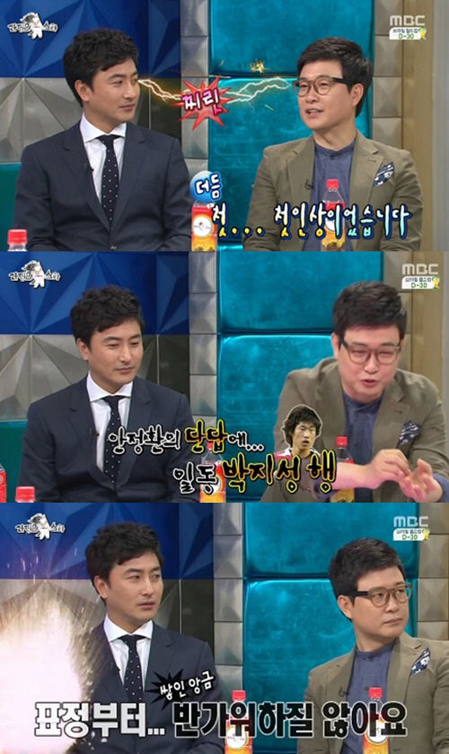 김성주는 "'몸 상태가 어떠냐', '아픈 곳은 없냐'등의 질문을 해도 단답형으로 답했다. 알고 보니 (본인의) 스타일이었다"며 "그런데 박지성은 길게 잘 대답해줘서 취재진이 다들 박지성에게 몰려갔다"고 말해 웃음을 자아냈다.