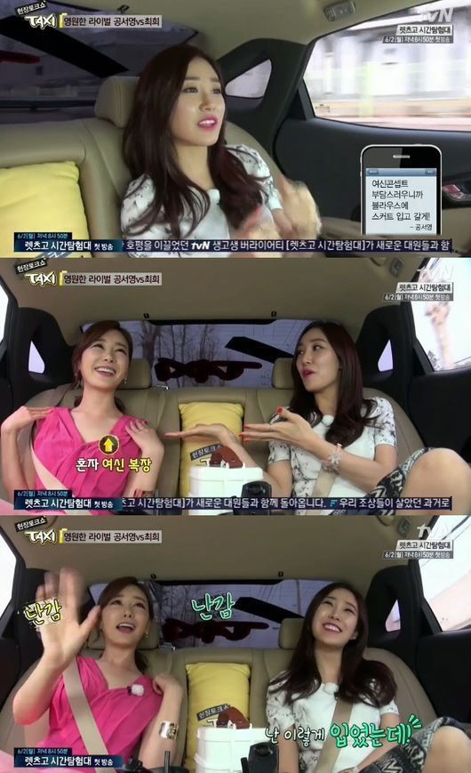 공서영은 "서로 라이벌 의식 없느냐?"는 김구라의 질문에 "솔직히 라이벌 의식이 안 없어진다. 사실 서로 질투만 하면 힘들기만 할텐데, (경쟁의식이) 서로 발전하는 동기부여가 된다"고 답했다.