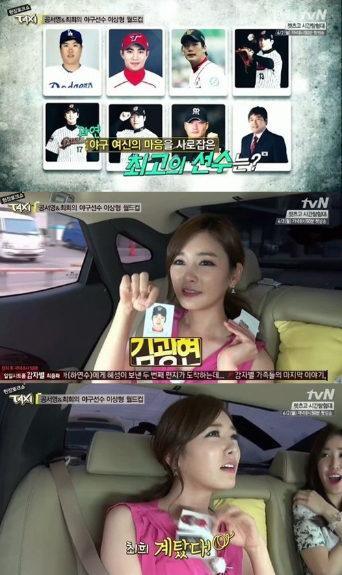 이날 방송에서는 야구선수 이상형 월드컵이 진행됐다. 후보 명단에는 '코리안 몬스터' 류현진(LA 다저스)을 비롯해' 이대형(기아 타이거즈), 김광현(SK 와이번스), 강민호(롯데 자이언츠), 오승환(한신 타이거즈), 황재균(롯데 자이언츠), 심수창(롯데 자이언츠)에 은퇴한 양준혁까지 이름을 올렸다.