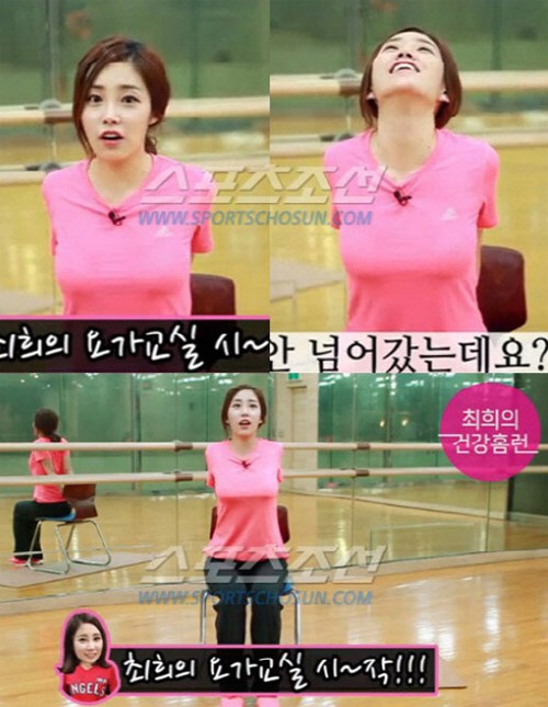 방송 이후 최희의 볼륨 몸매가 드러난 과거 방송 모습이 눈길을 끌고 있다. 최희는 과거 건강보험심사평가원 팟캐스트 방송 '최희의 건강홈런'을 통해 요가 하는 모습을 선보여 시선을 모았다. 최희는 핑크색 운동복을 입고 직접 요가 동작을 선보이며 육감적인 몸매라인을 과시, 남성 팬들의 마음을 설레게 했다.