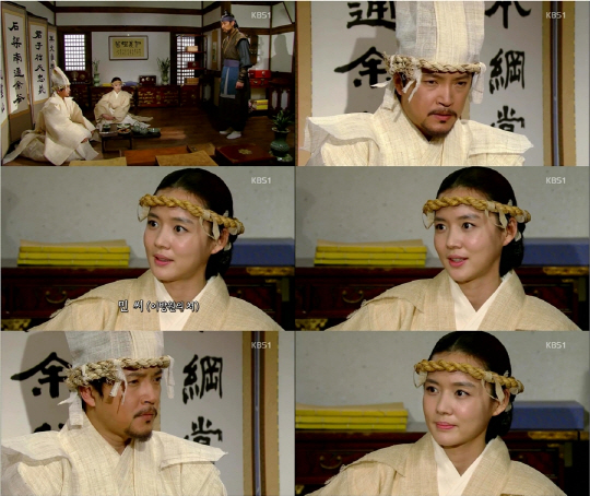 이방원이 모친의 죽음으로 빈소를 지키느라 부친 이성계를 지근에서 보필할 수 없는 점을 한탄하자 민씨는 "아들만 여섯을 두고 가신 어머님입니다. 어머님께서 영감에게 바라는 것이 즐비한 형제들 틈에 끼어 곡을 하는 것이겠습니까, 아니면 일전을 앞둔 아버님 곁에서 칼을 쥐고 계신 것이겠습니까"하고 강단있는 충고를 던졌다. 이어 "몸이야 어디 있은들 대수겠습니까? 효도는 마음입니다"라는 말로 개경으로 향하려는 남편의 마음을 굳힌다. 상경한 이방원은 이성계 대신 정몽주를 선죽교에서 살해, 고려 최후의 충신을 제거하고 자신들이 주장하는 '대업'을 완성하게 된다.