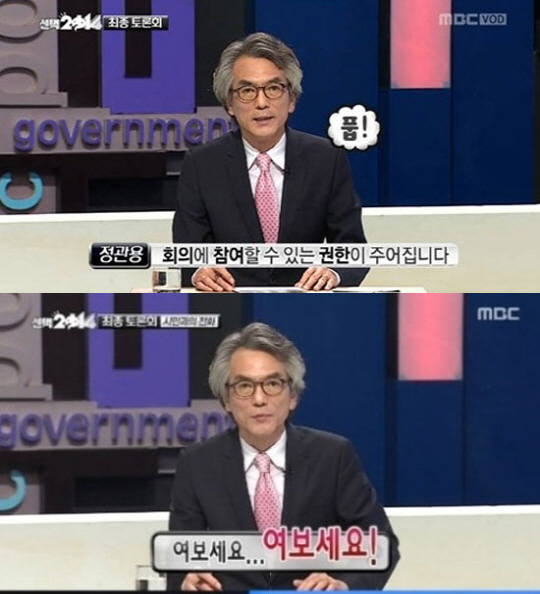 이어 정관용은 세 후보자들에게 "무게가 실리게 되는 권한에 의해서 이런 선거를 꼭 해야 합니까?"라고 물었고, 이에 세 후보는 "우리에겐 중요한 문제"라고 진지하게 답해 웃음을 자아냈다.