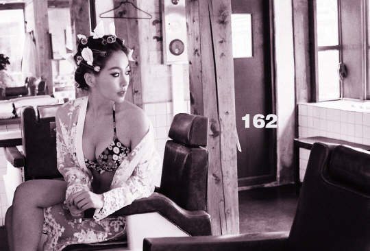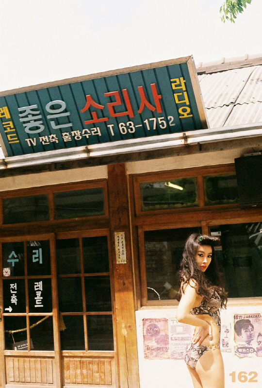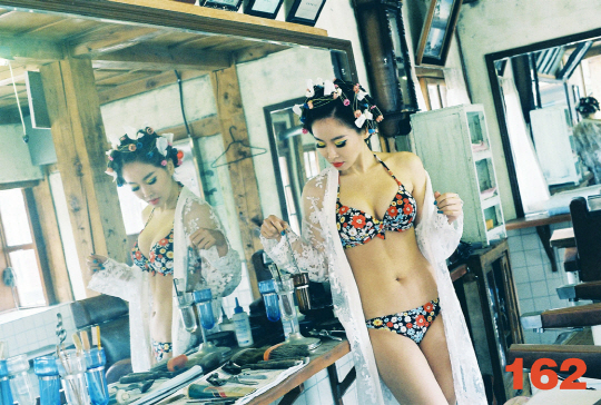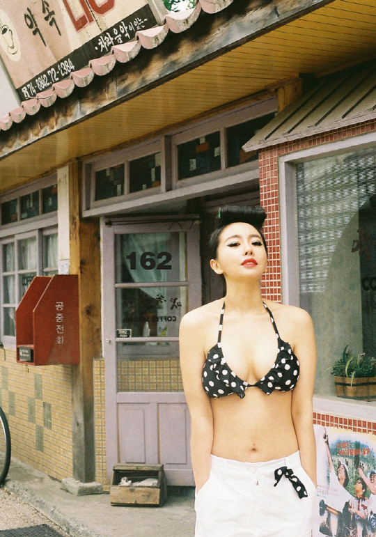배우 한수아가 레트로 무드의 파격적인 비키니 노출 화보를 공개했다.