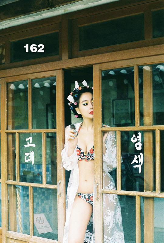 한수아의 도회적인 외모와 글래머러스한 몸매에 복고풍의 메이크업, '사자 머리'를 연상시키는 헤어스타일과 키치풍 수영복이 묘한 대조를 이룬다. 한수아는 수영복 위에 속이 훤히 비쳐 보이는 레이스 가운을 걸쳐 풍만한 몸매를 과시하는가 하면, 밀리터리풍의 오버사이즈 셔츠를 걸쳐 보이프렌드 룩을 선보이기도 했다.