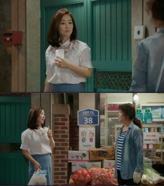 윤유선은 조아맘 꽃모티브 진주 블라우스에 에리카 데님 스커트를 매치해 세련되면서도 고급스러운 스타일을 선보였다. 특히 꽃모티브 진주 블라우스는 단정한 셔츠카라와 어깨선이 살짝 드러나는 시스루 스타일에 꽃 모티브 레이스를 컷팅한 패치 디자인에 진주, 볼 장식으로 포인트를 주어 소녀 감성을 지닌 교감선생님을 연기하는 윤유선을 고급스러우면서도 흔하지 않은 감각적인 스타일로 완성시켰다.