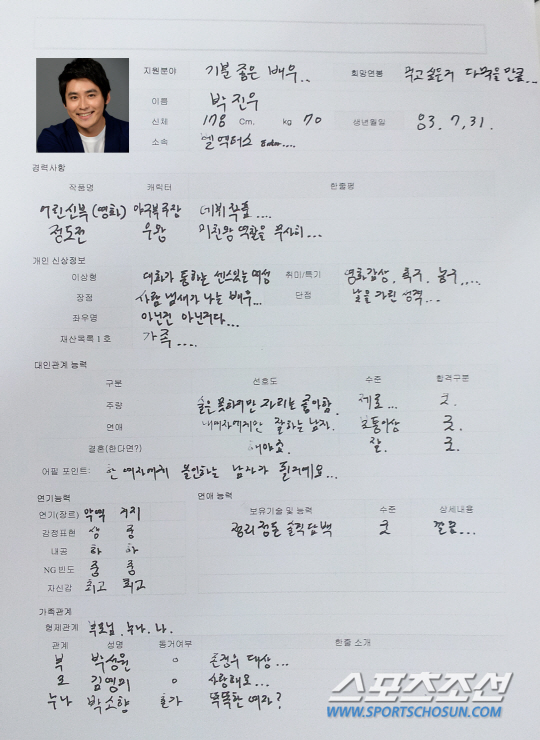 가족관계부터 살펴보자. 1983년 7월 31일 생인 박진우는 1남 1녀 중 막내다. 성품이 얼굴에 드러난다는 말이 있듯 참 잘 자란 아들이다. 아버지에게는 존경심을, 어머니에겐 사랑을, 누나에게는 애정을 드러낼 줄 아는 남자다. 그는 "어릴 때부터 연기를 꿈꿨던 건 아니다. 원래는 의대에 가고 싶었다. 부모님이 몸이 안 좋으셨기 때문에 내가 의사가 돼 신경써드리고 싶다는 생각을 갖고 있었다"고 밝혔다.