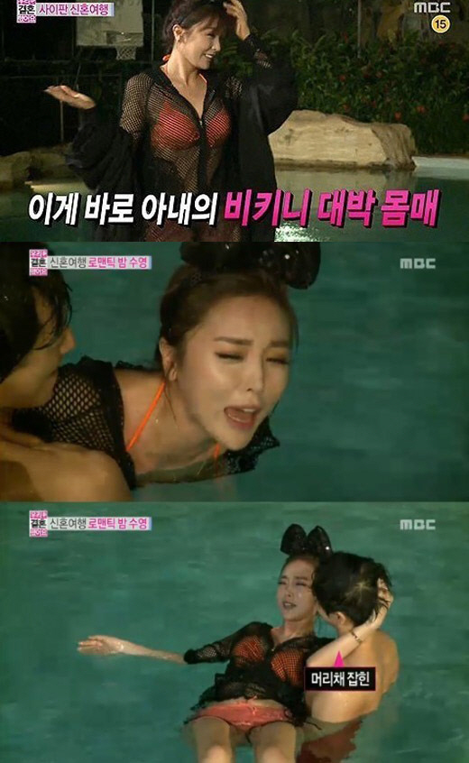 17일 방송된 MBC '우리 결혼했어요'에서 사이판으로 신혼여행을 떠난 홍진영과 남궁민은 수영장 데이트를 했다. 망사 수영복 패션으로 남편 남궁민 마음을 사로 잡은 홍진영은 엉성한 수영 실력으로 반전 매력을 뽐냈다. 이윽고 수영복을 입은 두 사람은 수위 높은 수영연습을 하며 남궁민은 홍진영의 몸을 잡아줬고, 실제 연인같은 다정한 모습을 보여줬다.