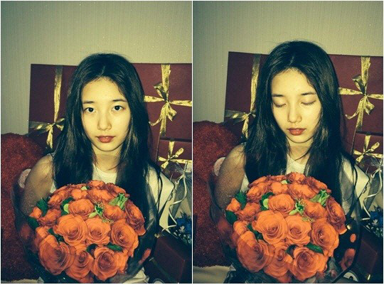 공개된 사진 속 수지는 선물을 배경으로 장미 꽃다발을 들고 다양한 표정을 짓고 있다. 특히 수지의 청순하면서도 몽환적인 분위기가 보는 이들의 시선을 사로잡는다.