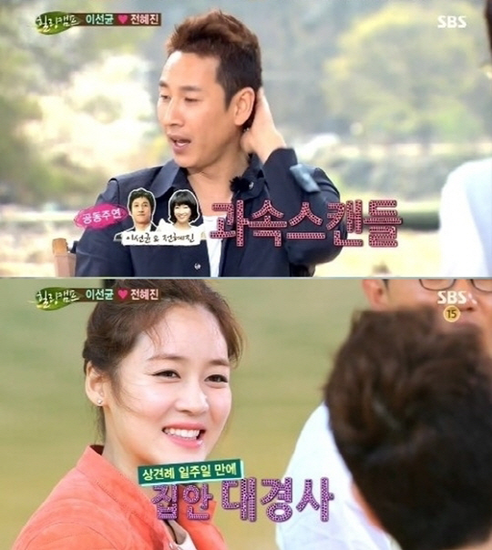 이날 이선균은 "아이가 생겨 어쩔 수 없이 결혼했냐"는 MC들의 질문에 "일단은 속도위반이지만 전혜진과 크게 다툰 후 사이가 더 좋아진 상황이었다"며 "우리는 결혼하기로 상견례까지 마친 상황이었다"고 해명했다.
