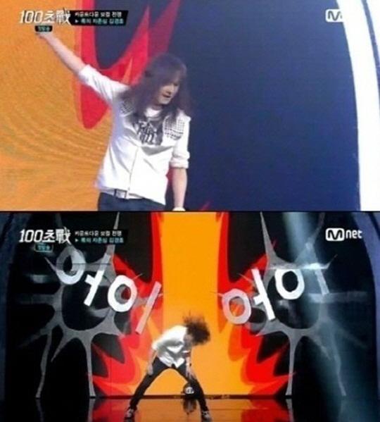 김경호는 20일 첫 방송된 Mnet '100초전'에 출연해 크레용팝의 '어이'를 록으로 재해석했다.