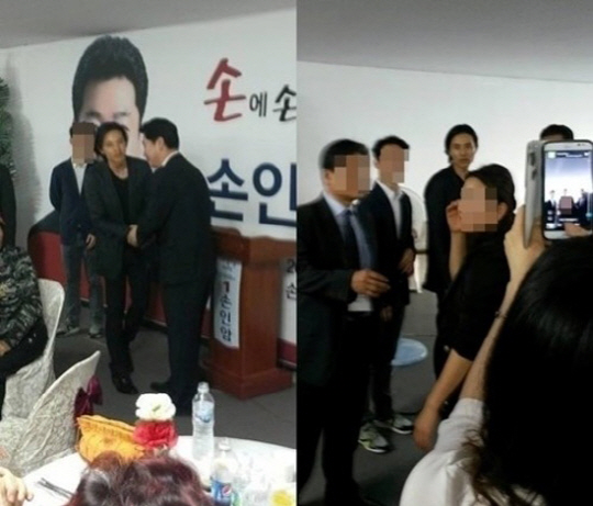 지난 20일 각종 SNS와 인터넷 게시판에는 손인암 광명시 제3선거구 새누리당 후보 사무실에서 손 후보와 악수를 나누는 원빈의 모습이 게재됐다.