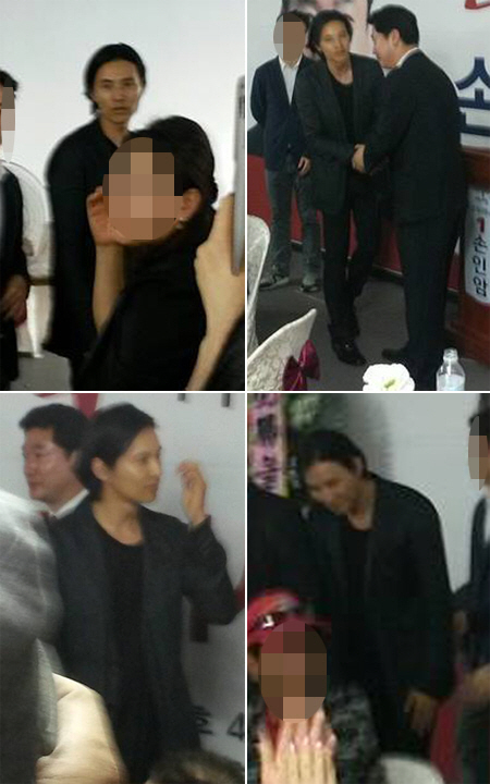 사진에는 긴 머리카락을 귀 뒤로 단정하게 넘기고 깔끔한 올 블랙 슈트를 입은 원빈이 사무실에 있는 시민들에게 깍듯하게 인사하는 모습 등이 담겨 있다. 현장에 있던 시민들에 따르면 원빈은 길지 않은 시간 사무실에 있다가 빠져나갔다는 후문이다.