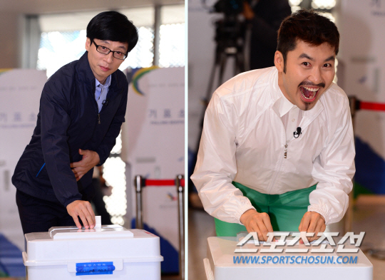 22일 서울 중구 동대문디자인플라자(DDP)에서 MBC 예능 '무한도전'의 차세대 리더를 선출하는 선거가 실시됐다. MBC 예능프로그램 '무한도전'의 차세대 리더를 뽑는 '선택 2014' 투표는 이미 전국 11개 투표소에서 사전투표가 이틀에 걸쳐 진행 되었으며, 22일 오전 6시부터 오후 6시까지 온라인, 오프라인 투표로 선거가 실시된다. 투표는 나이에 상관 없이 1인 1표로 참여 가능하다. 무한도전 멤버 유재석(왼쪽)과 노홍철이 투표소를 찾아 투표를 하고 있다. 동대문=송정헌 기자 songs@sportschosun.com