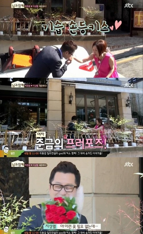 이후 두 사람은 한 카페에서 첫 만남을 가졌다. 스포츠카를 타고 화려하게 나타난 박준금은 지상렬에게 꽃을 건네며 프러포즈했다. 이에 지상렬은 박준금의 손등에 키스를 하며 설레는 가상부부 생활을 시작했다. <스포츠조선닷컴>