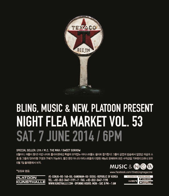 뮤직앤뉴가 매거진 블링과 플래툰이 매달 첫째 주 토요일에 진행하는 '나이트 플리마켓'을 공동 개최하며 뮤직앤뉴 아티스트인 린, 엠씨더맥스, 스윗소로우가 6월의 스페셜 셀러로 참여하는 것.