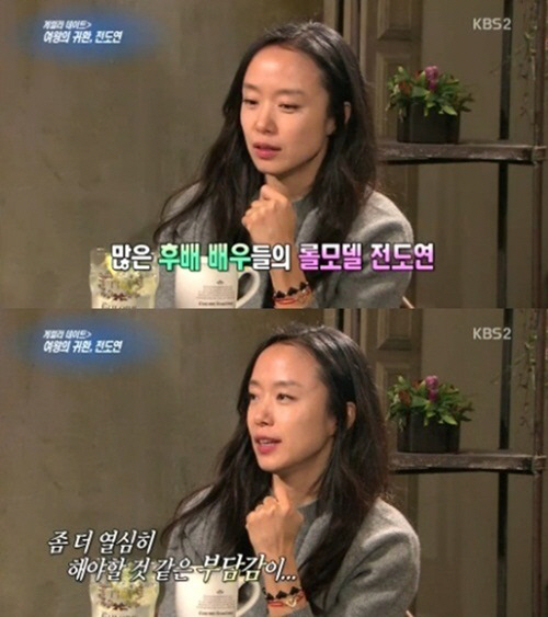 앞서 전도연은 지난해 12월 KBS 2TV '연예가중계' 인터뷰 때도 이와 같은 팔찌를 착용했으며, 영화 '집으로 가는 길' 인터뷰 때도 이 팔찌를 차고 등장해 눈길을 끌었다.