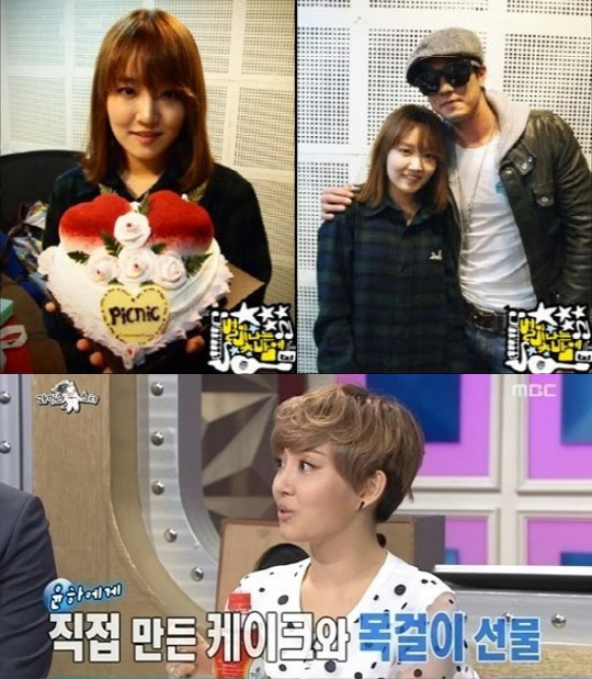 그러자 윤하는 "소지섭 씨 앨범에 피처링으로 참여해 소지섭 씨가 제가 진행하는 라디오 게스트로 나오신거다'라며, "직접 만든 케이크와 함께 부른 노래 제목을 쓴 목걸이를 선물해줬다"고 공개했다.