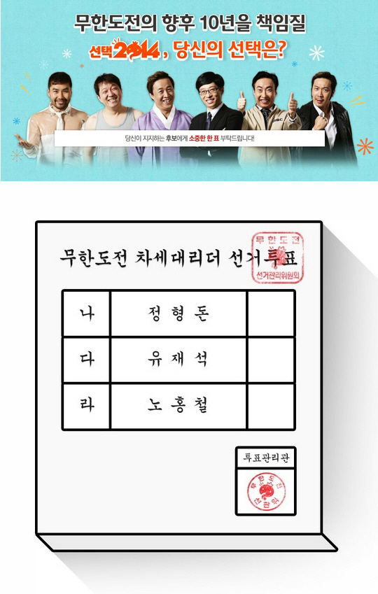 MBC 무한도전 '선택 2014' 온라인과 오프라인 투표가 진행중인 가운데 온라인 투표자수가 10만명을 넘어섰다.