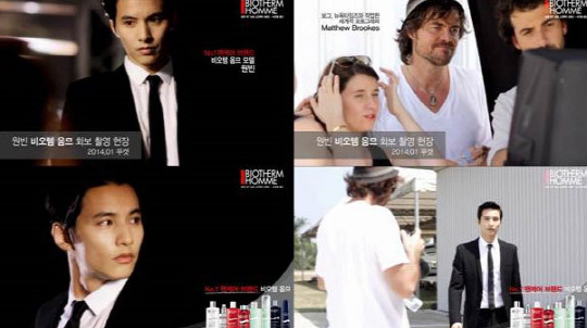 최근 화장품 브랜드 비오템은 공식 페이스북 계정을 통해 원빈의 화보 촬영 현장을 공개했다.