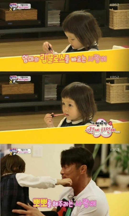 25일 방송된 KBS 2TV 예능프로그램 '해피선데이 - 슈퍼맨이 돌아왔다'에서는 추사랑이 엄마 야노시호의 화장품으로 메이크업을 하는 모습이 방송됐다.