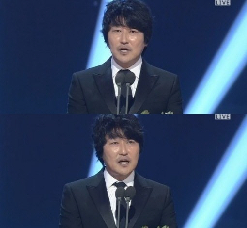 송강호가 백상예술 대상을 수상하면서 세월호 희생자와 유가족을 위로했다.