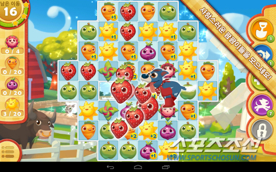 딸기, 사과, 당근, 양파 등을 형상화한 깜찍한 농작물 캐릭터들이 나오며, 각 레벨마다 수확해야하는 농작물의 종류와 갯수를 목표로 제시해 그 목표를 달성해야만 다음 레벨로 넘어갈 수 있도록 구성돼 있다.