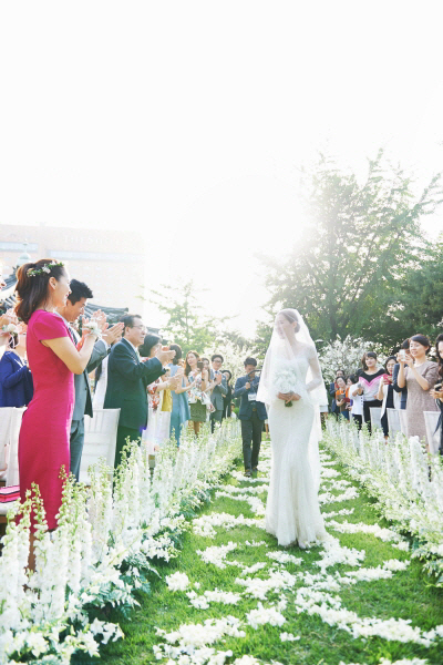 이날 결혼식은 야외에서 특별한 분위기 속에 하객 200여명의 축하를 받으며 신랑, 신부의 친구들이 직접 참여하는 소규모 파티 같은 아름다운 결혼식으로 진행됐다.
