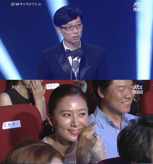 백상 유재석 김희애 물회 패러디 사과도 웃겨", "