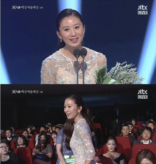 이날 모습을 드러낸 김희애는 종합편성채널 JTBC '밀회'(극본 정성주 연출 안판석)에서 보여준 패션만큼이나 훌륭한 드레스로 보는 이들의 시선을 사로잡았다.