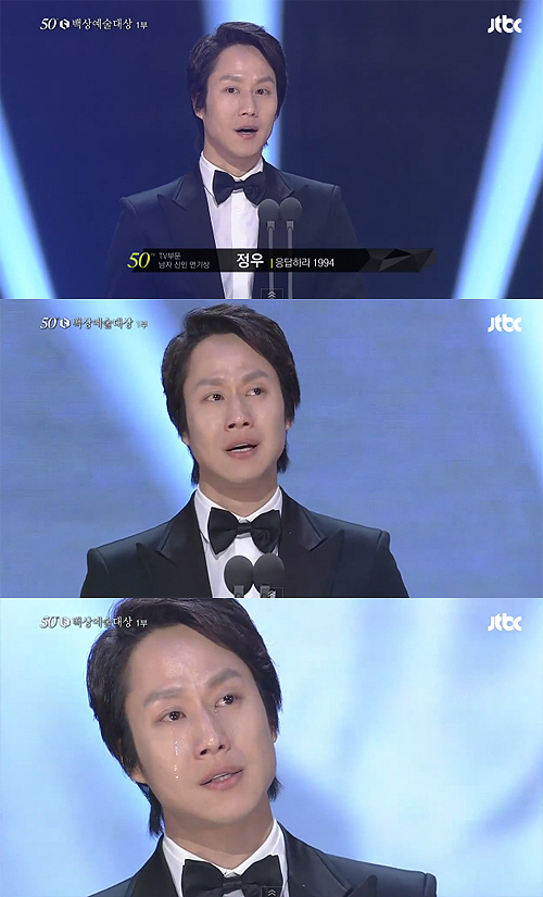 '백상예술대상' 정우 수상소감, 펑펑 우는데 내가 다 마음이 짠했다", "