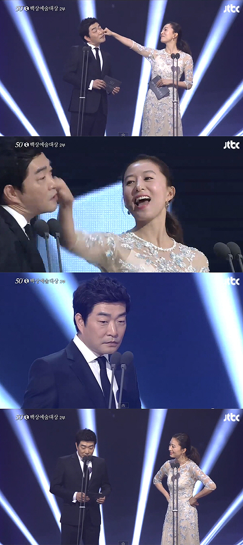 김희애와 손현주는 지난 27일 서울 경희대학교 평화의전당에서 진행된 제50회 백상예술대상에서 TV부문 최우수상을 시상하러 무대에 등장했다.
