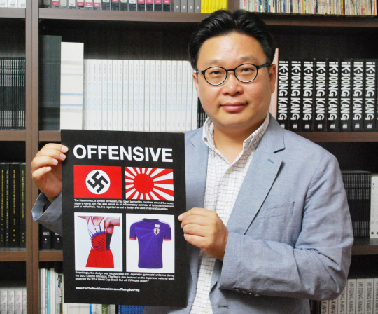 이번 광고를 기획한 서 교수는 "올해 초부터 FIFA 홈페이지에서는 월드컵 본선 진출국 국가대표팀 유니폼을 판매하기 시작했는데 일본 전범기 문양에 대한 논란이 일자 디자인 설명문구만 살짝 변경하여 아직도 판매중이다"고 밝혔다.
