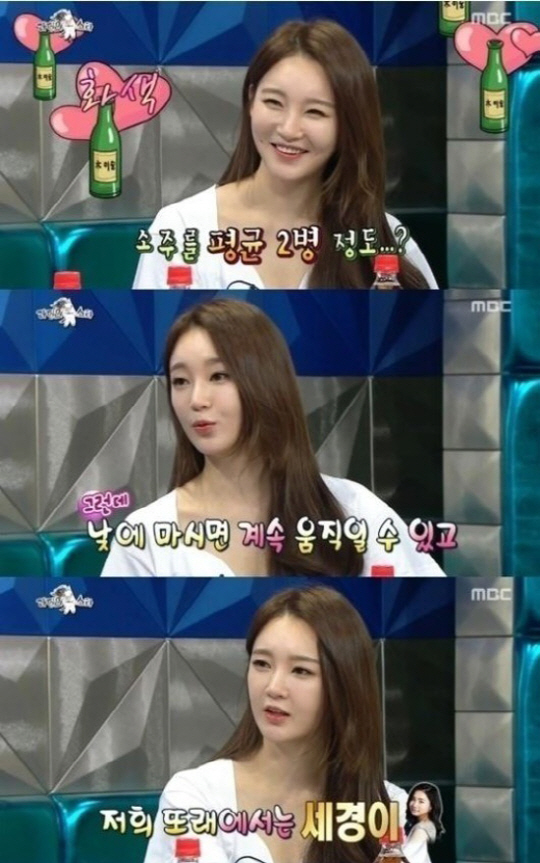 이날 MC들은 강민경의 주당면모에 대해 물었고, 강민경은 "소주 두 병 정도다. 그 이상 마시면 내가 술을 마신다는 느낌이 아니다"고 말했다.
