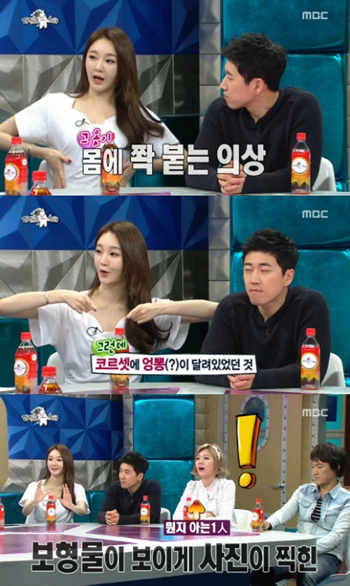 이날 강민경은 '엉덩이뽕' 이야기가 나오자 "당시 몸에 딱 붙는 의상을 입어서 배를 누르는 보정 속옷을 입었다. 코르셋에 (엉덩이) 패드가 같이 있었다"며 "카메라 플래시가 터지니까 그 보형물이 다 드러난 거다"라고 설명했다.