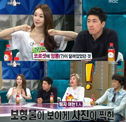이날 MC 김국진은 강민경에게 "엉뽕(엉덩이뽕)을 착용하고 찍힌 사진이 너무 티가 나서 다시는 안하겠다고 선언했다던데"라고 운을 띄었다.