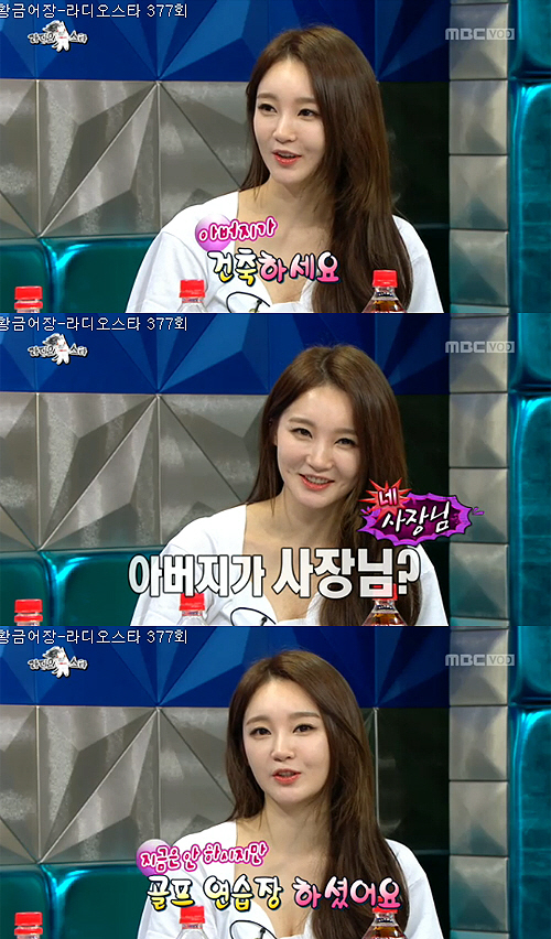 그러자 김구라는 "아버지가 사장님이냐. 스크린 골프도 한다고 들었다"고 말했고, 강민경은 "사장님은 맞다. 스크린 골프는 아니고 골프연습장을 하셨다. 지금은 안 하신다"고 답했다.