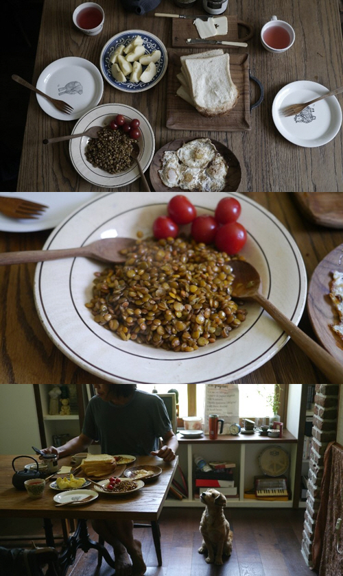 사진에는 빵과 계란, 사과, 렌틸콩이 주가 된 이효리가 직접 준비한 아침 밥상의 모습이 담겨 있다.