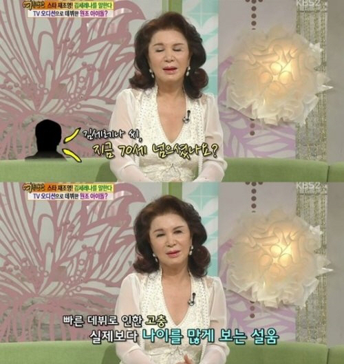 이어 김세레나는 "지금도 어디가면 '70세 넘으셨나요'라고 묻는다. 일찍 데뷔를 해서 실제보다 나이를 많게 본다. 남진(68), 조영남(69), 송대관(68) 씨가 저보다 위"라고 설명했다.