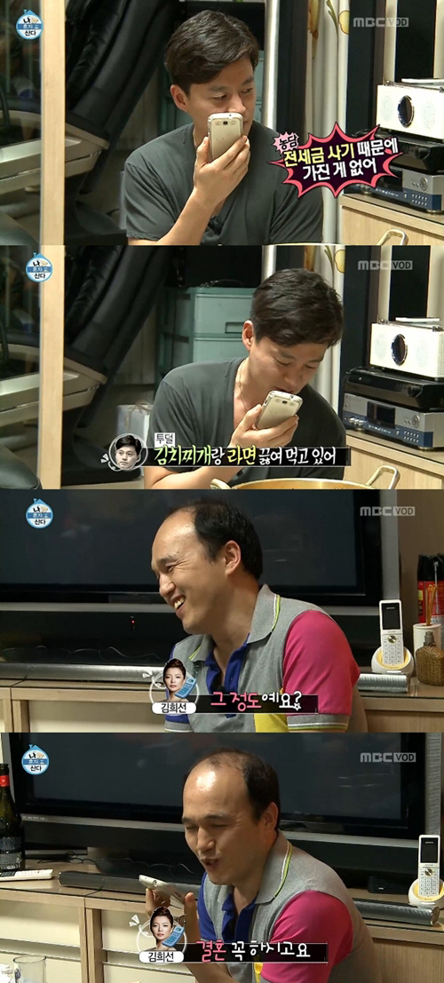 전화를 건네받은 이서진은 "안 오길 천만 다행이다. 신문지 깔아놓고 밥 먹고 있다"고 폭로해 김광규를 당황하게 했다. 이에 김희선은 "돈 많이 벌지 않냐? 발모제 광고도 하더라"고 말했고, 이서진은 "전세금 사기 때문에 돈 없다"고 농담을 해 웃음을 안겼다.