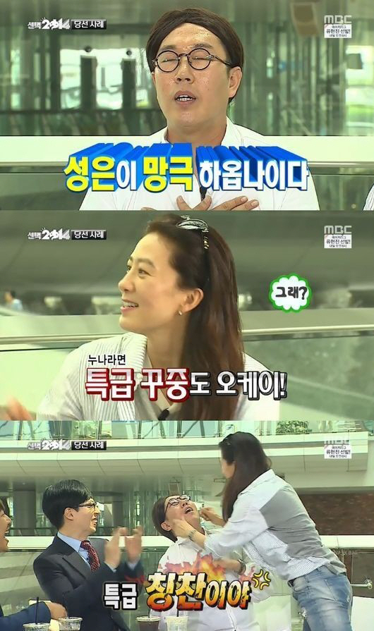 특히 '무한도전' 멤버들이 김영철에게 칭찬한번 해주라는 부탁에 김희애는 김영철의 볼을 꼬집으면서 "특급칭찬이야"라고 한 뒤 김영철과 포옹을 하며 훈훈한 분위기를 연출했다.