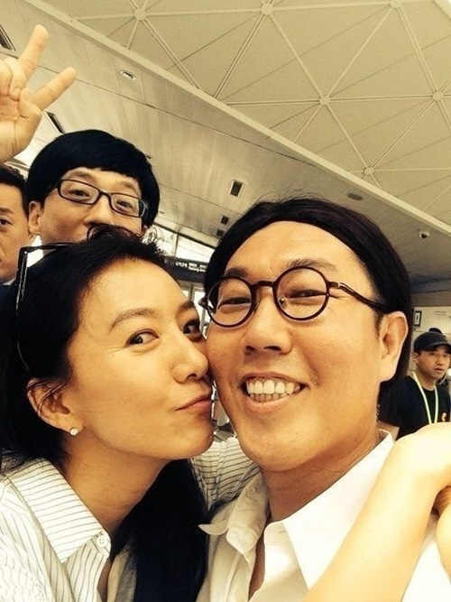 공개된 사진에는 김희애가 김영철의 볼에 입맞춤을 하려는 듯 한 포즈를 취하고 있으며, 특히 뒤에 유재석과 정준하가 함께 포착돼 눈길을 끌었다.