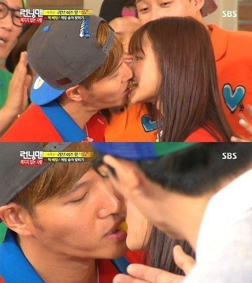 '런닝맨' 하연수와 김종국의 아찔한 '단무지 키스'가 화제다.
