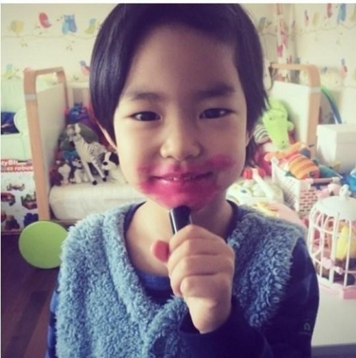 사진 속 하루는 입 주변에 립스틱을 잔뜩 칠하고 카메라를 향해 해맑은 미소를 짓고 있어 시선을 모은다.