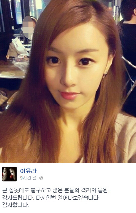 3일 이유라는 자신의 페이스북을 통해 "큰 잘못에도 불구하고 많은 분들의 격려와 응원 감사드립니다. 다시 한 번 일어나보겠습니다. 감사합니다"라는 글을 게재했다.
